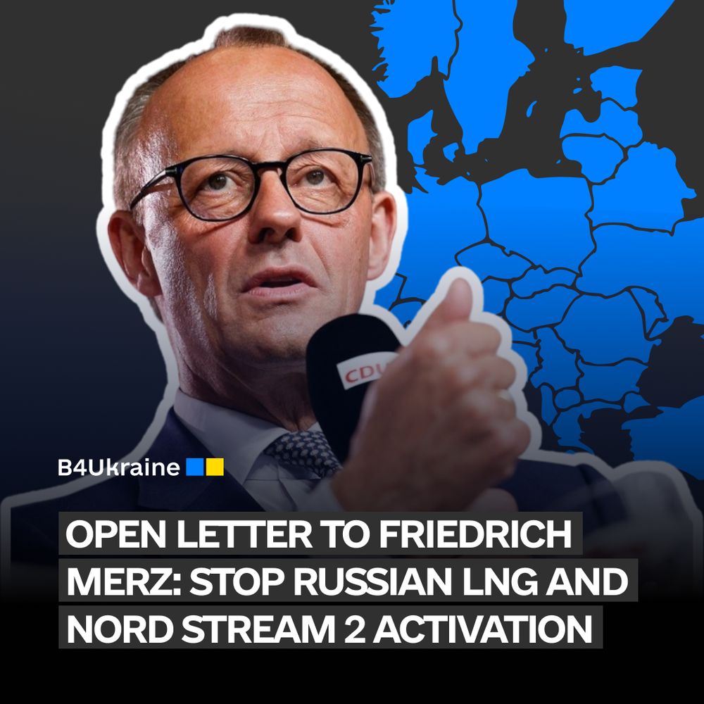 Dear Mr. Merz, please put an end to all efforts to make Germany dependent again on Russian gas. Stand with Ukraine and with European partners such as Poland and the Baltic States, and take a clear stance against putting Nord Stream 2 into operation.